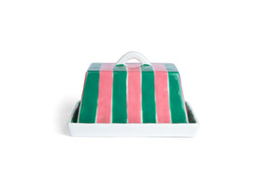 Noss & Co Ceramic Butter Dish - Pink & Green Stripe